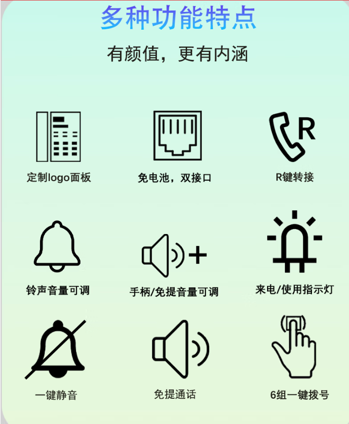 6:話機(jī)尺寸:130mm(寬)*220mm(深)*130mm(高)